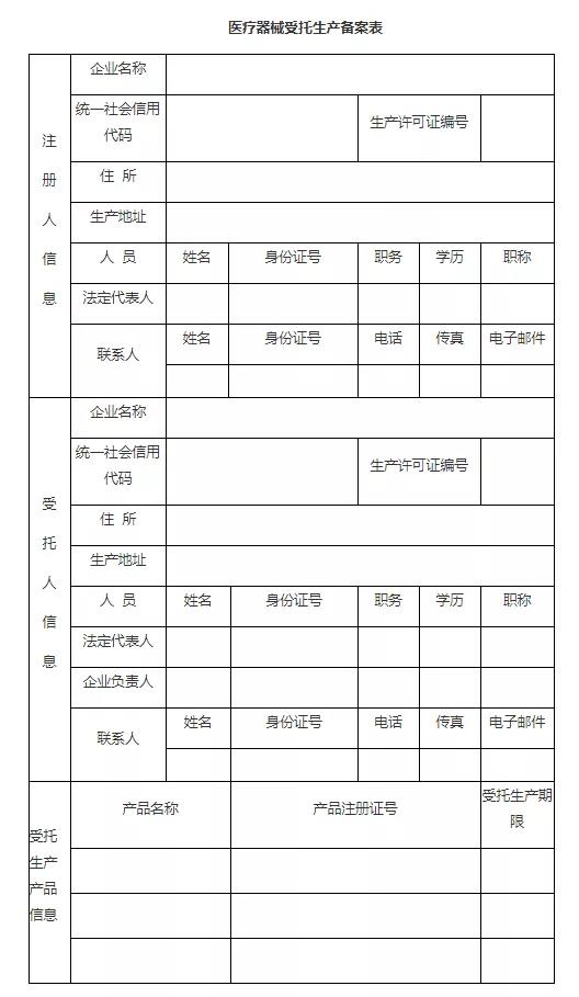 1. 试点工作书面申请,应当由申请人/注册人和受托人双方同时申请,明确已符合《实施方案》中申请人/注册人和受托人的条件。北京市受托人接受委托生产的,还应填写《医疗器械受托生产备案表》(见附件);